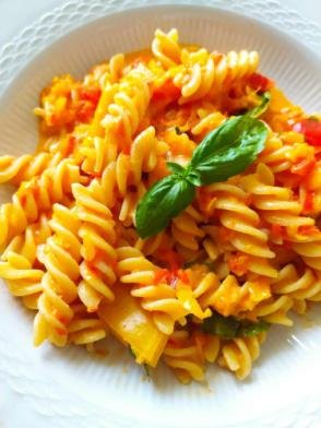 Fusilli integrali con crema di peperoni