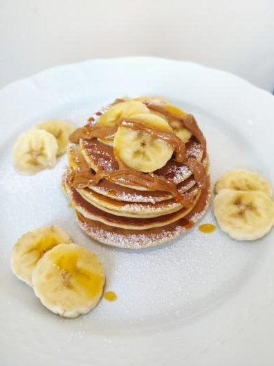 In una padella antiaderente cuoci pochi minuti per lato con una piccolissima quantità di olio extravergine di oliva o di cocco. Puoi farcire i pancake come più gradisci: marmellata, yogurt, frutta, cioccolato fondente , creme di frutta secca. In foto per alcuni pancake ho usato il burro d’arachidi, il miele e la banana, per altri invece lo yogurt bianco con la composta di mela cotogne
